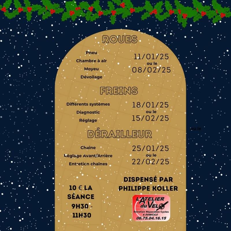 D'INITIATION A LA MECANIQUE CYCLES, les samedis matins de Janvier et Février.